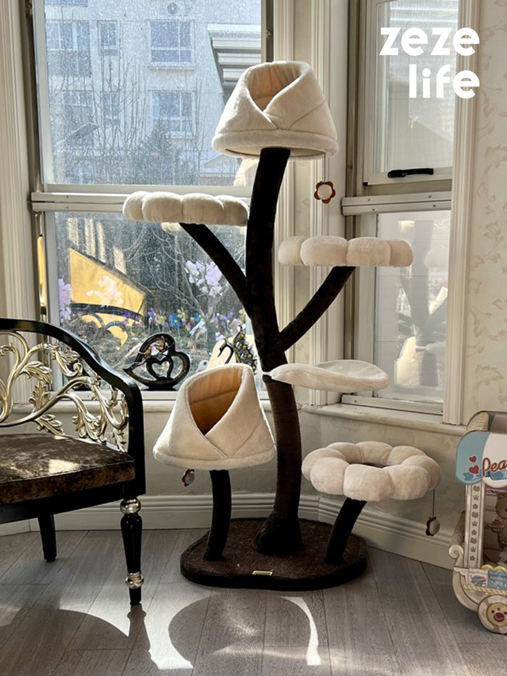 Blossom peered out from her favorite sunlit nook, spotting the gorgeous new tree near the window. She climbed smoothly up the curved branches, feeling each platform cradle her body perfectly. Reaching the top bloom, Blossom curled up happily in the cozy sheltered bed.