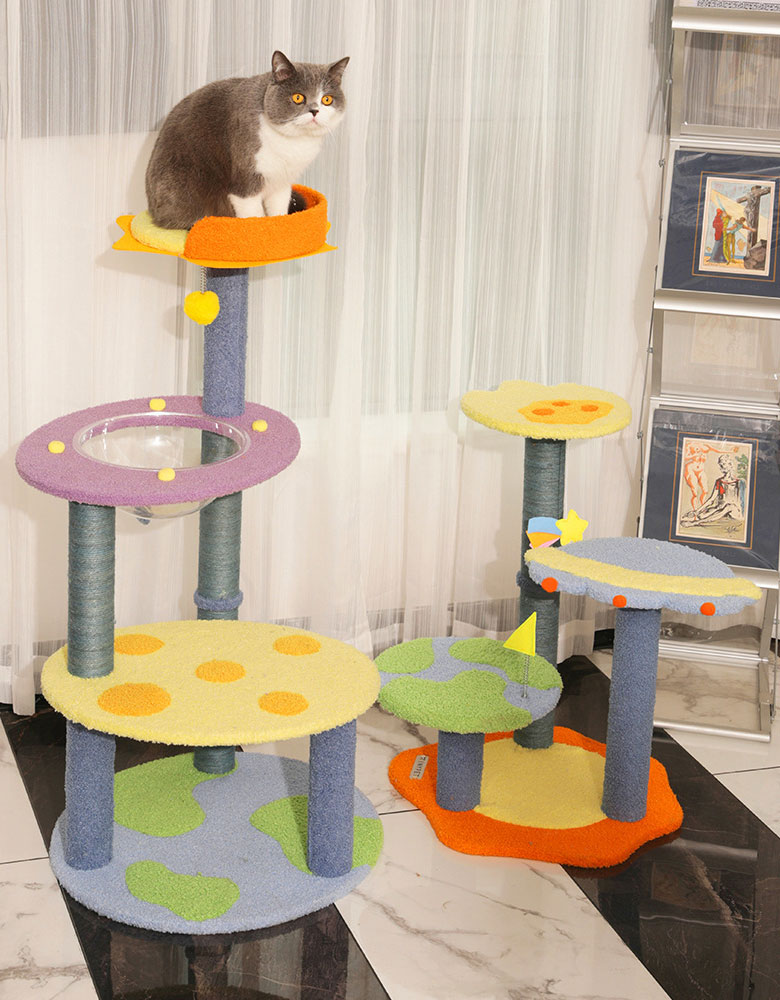 - Space-themed Design – The spaceship cat tree adds a touch of outer space with its space-themed design. Each layer resembles a different celestial body, including the ship, the Earth, the moon and sun.