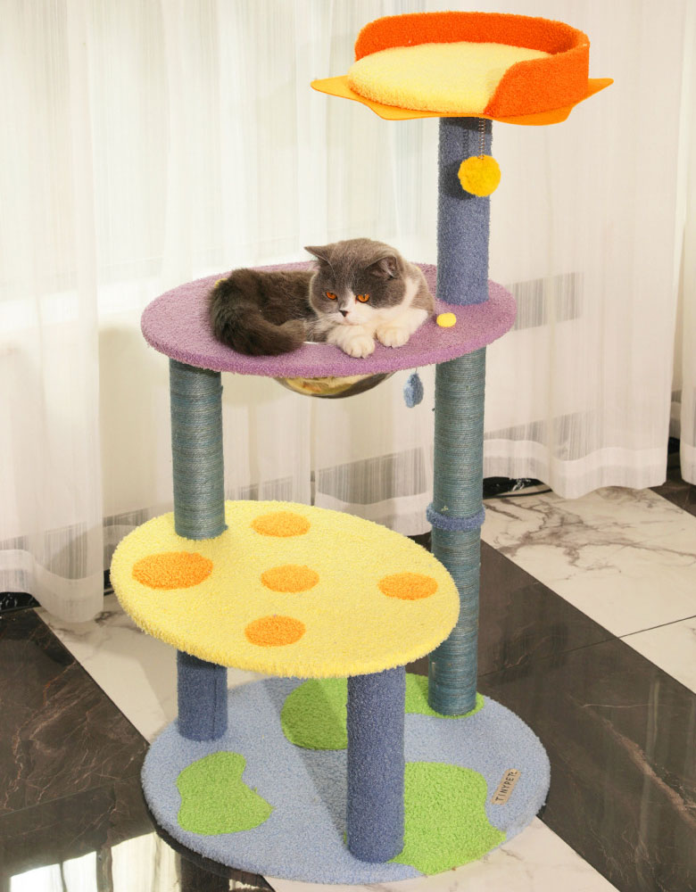 - Soft and Comfortable – The cat tower is covered in soft and plush material, making it a comfortable spot for your cat to rest and relax.
