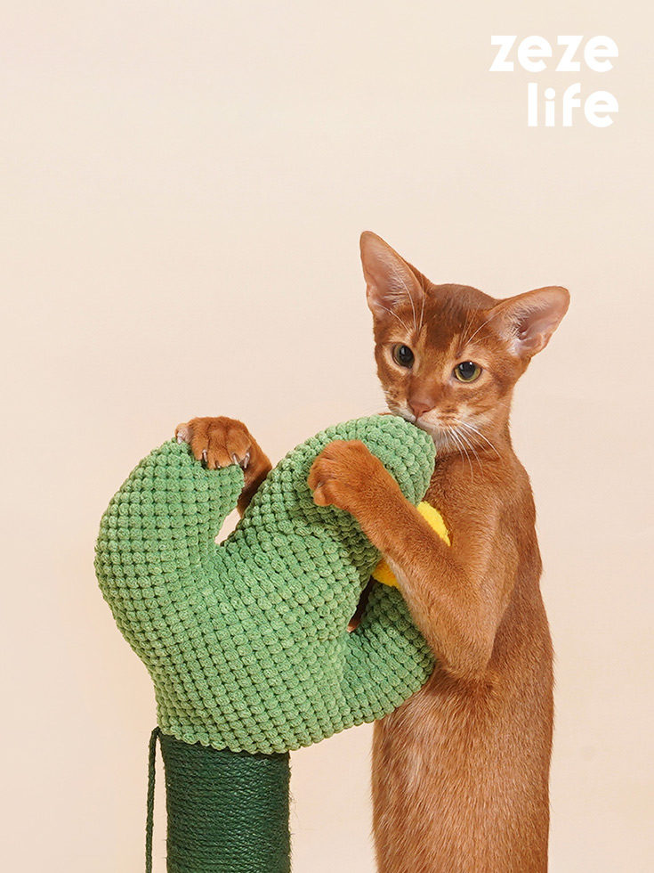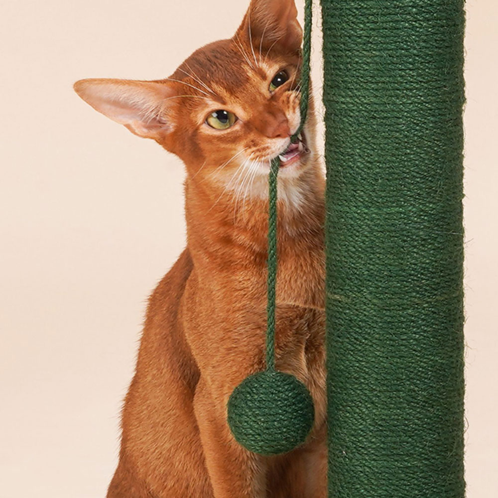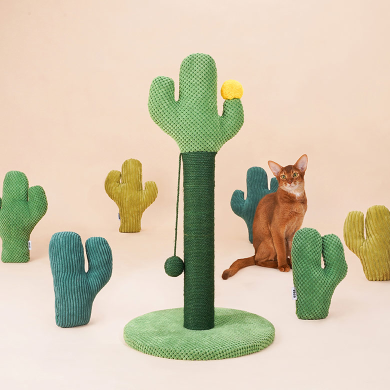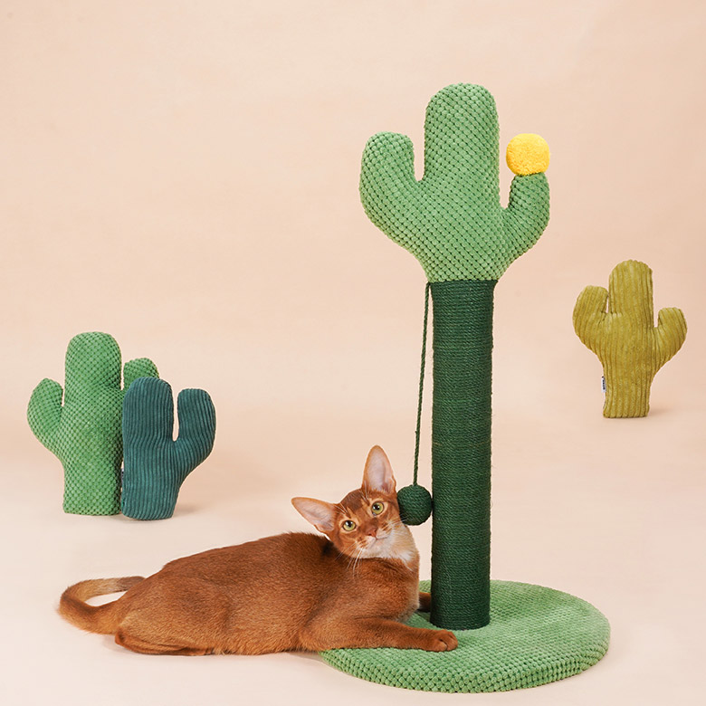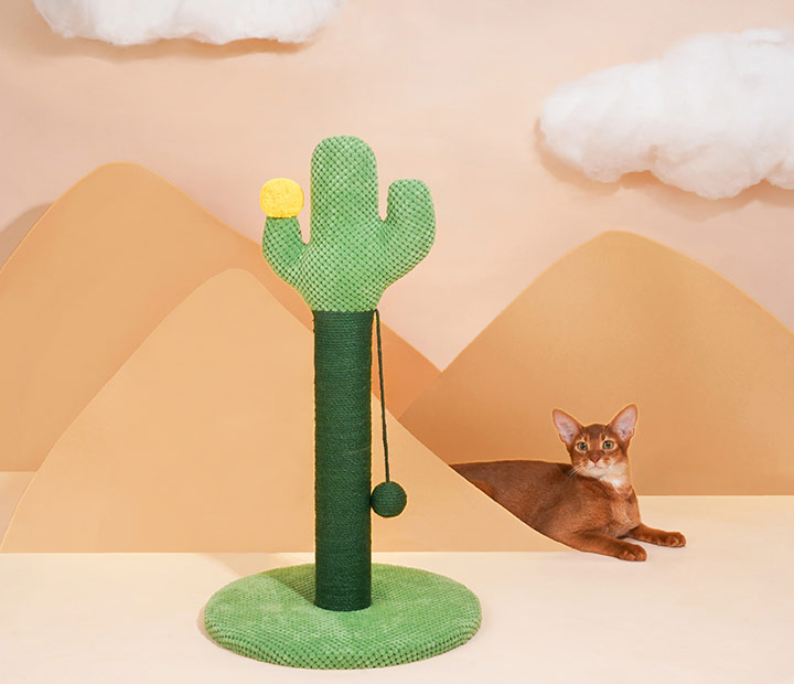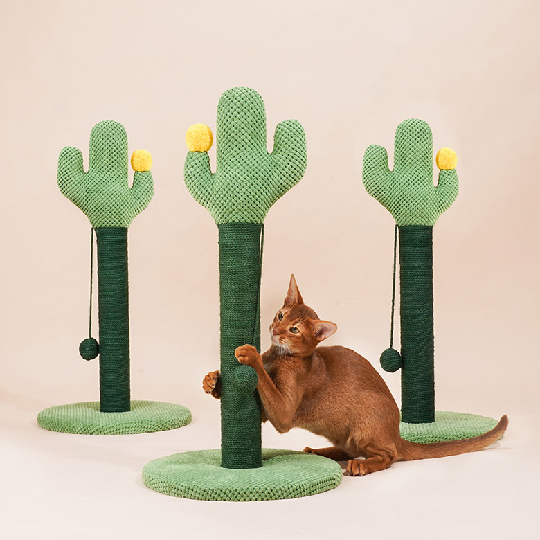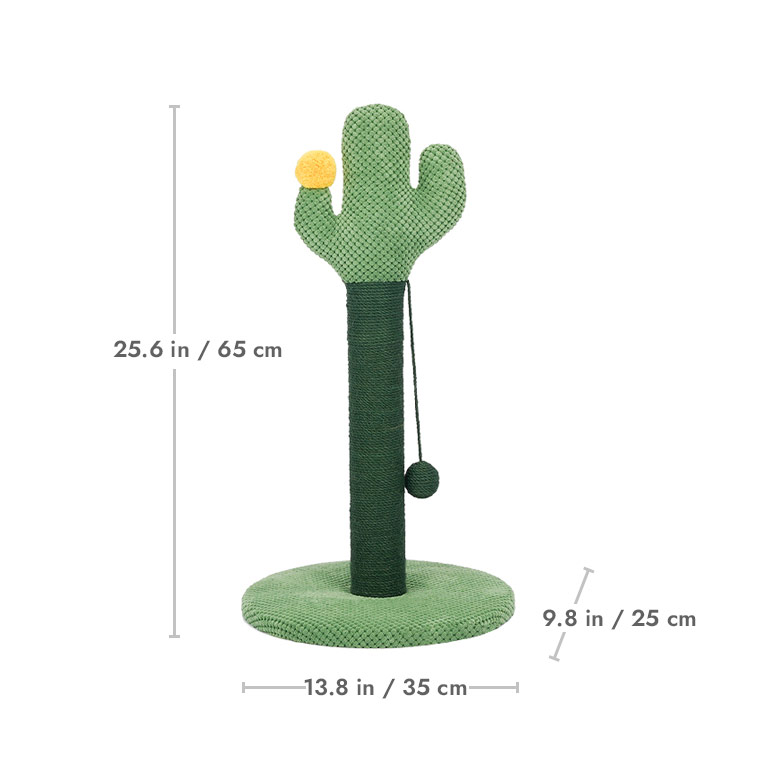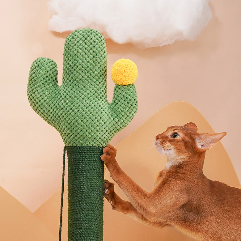 The cat stretched and yawned in a sunlit spot by the window. It had woken from its nap eager to play. Across the room stood its favorite toy: a green cactus scratching post.The cat trotted over and rubbed its cheek against the post’s soft covering. A dangling ball swayed, catching its eye. As it pounced and batted the toy, upbeat sounds filled the air.Rearing up on back paws, the cat raked its front claws through woven ropes that were rough enough to satisfy its itch but not hurt delicate pads. With a solid base holding firm, the post made the perfect companion on sunny afternoons.Watching from the kitchen, Cats’ owner smiled at her playful antics. They were glad she took such pleasure from her cactus cat scratcher on sunny living room afternoons like this.