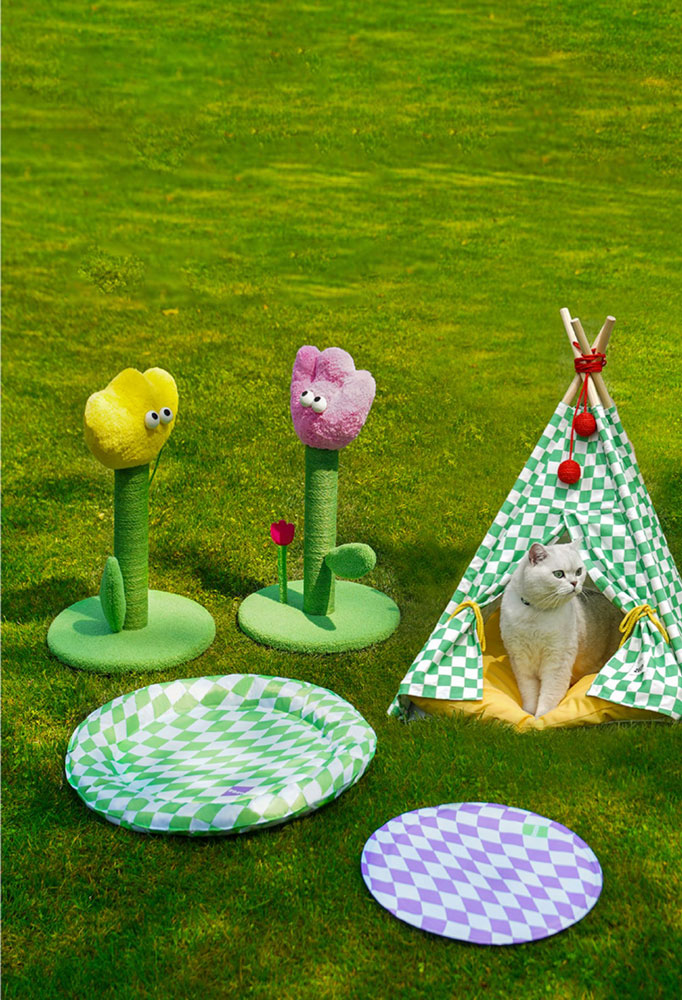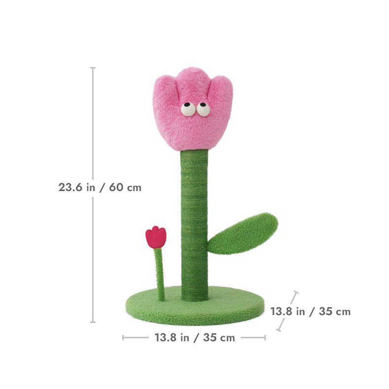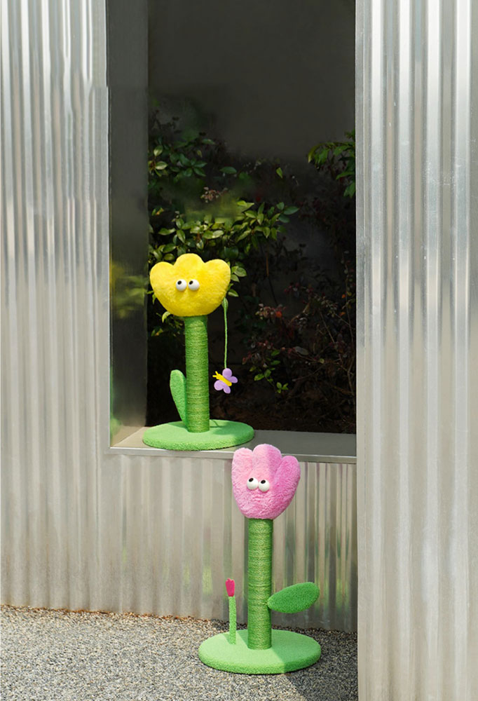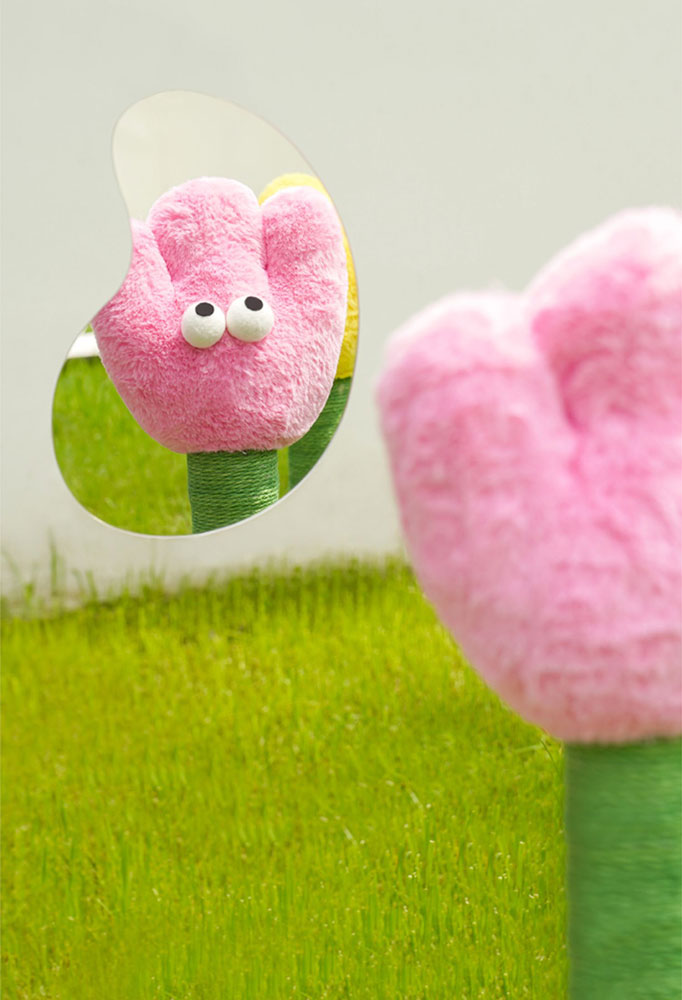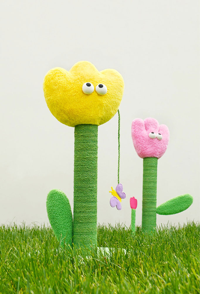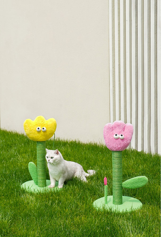 Butterscotch loved flowers. But she would get into trouble whenever she played with the blossoms in her house. So, her human decided to give her a tulip cat scratching post.