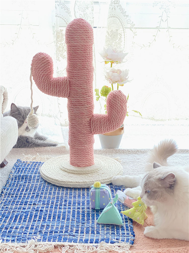 - Premium Quality Sisal Rope – The pink cactus cat scratcher is made of strong and durable premium sisal rope material, ensuring it can withstand your cat’s scratching behavior.
