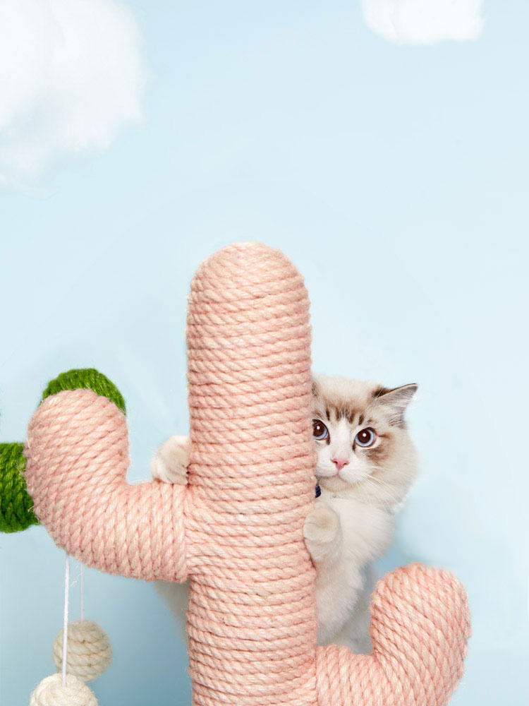 The small kitten had boundless energy and loved to sharpen its claws, much to the furniture’s dismay. Cushions and curtains fell victim daily to the fluffy culprit. Its owners grew worried for their home’s wellbeing. Then one afternoon, they brought home a cheerful pink cactus cat scratcher. Intrigued by the knotted ropes, the kitten spent hours climbing and pouncing. To the family’s relief, the scratching post absorbed all that bubbly kitten energy. No longer did they find ruined cushions and shredded curtains around the home. The pink cactus cat scratching post stood tall and intact, saving their furniture from tiny claws with each playful scratch.