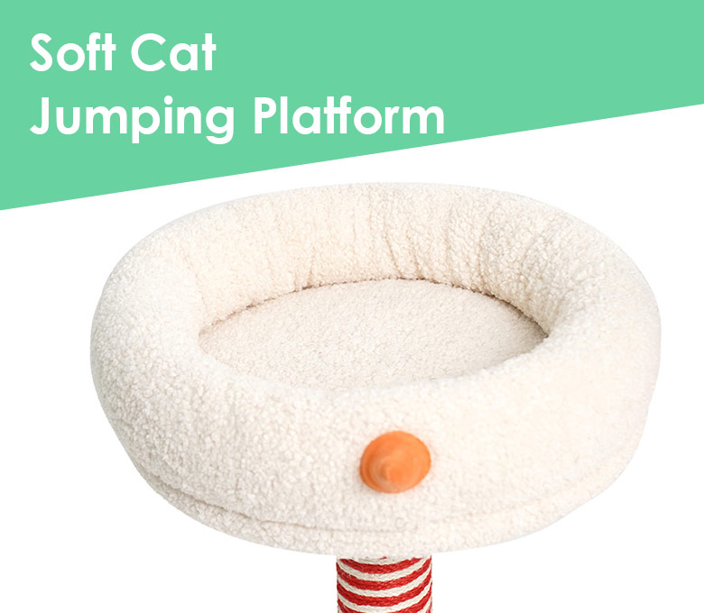 - Soft Cat Jumping Platform – The heightened design around it increases the cat’s sense of security. Padded with fluffy fabric, comfortable and does not easy to lose shape.