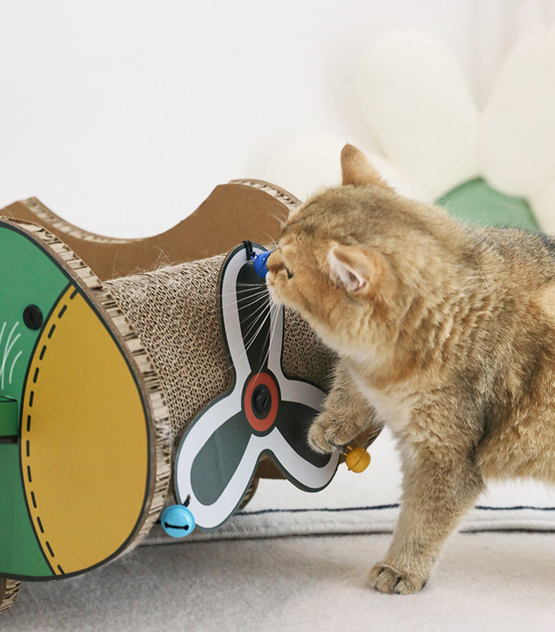 - Propeller Airplane Shape – Movable spiral with bell to stimulate cat’s interest in play.