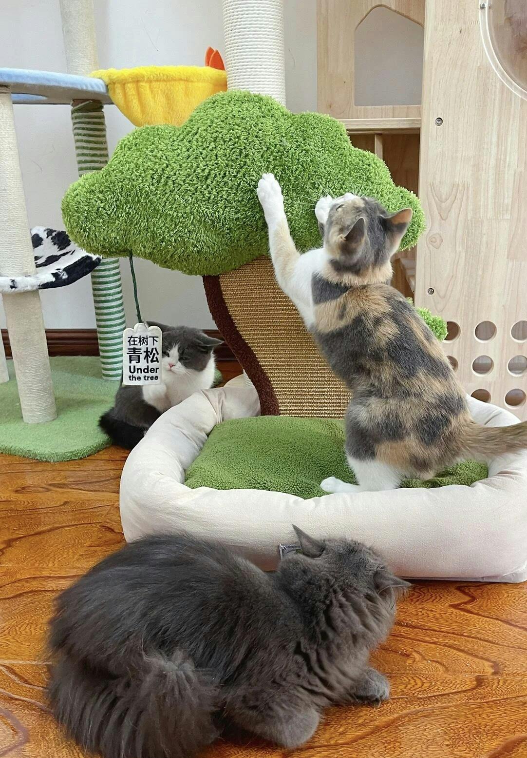 - Potted Plant Shape – Pine tree shape, taking into account practicality and ornamental. Peach velvet, grain cashmere and other materials are healthy and harmless, and it is safer for cats to bite.