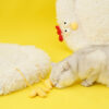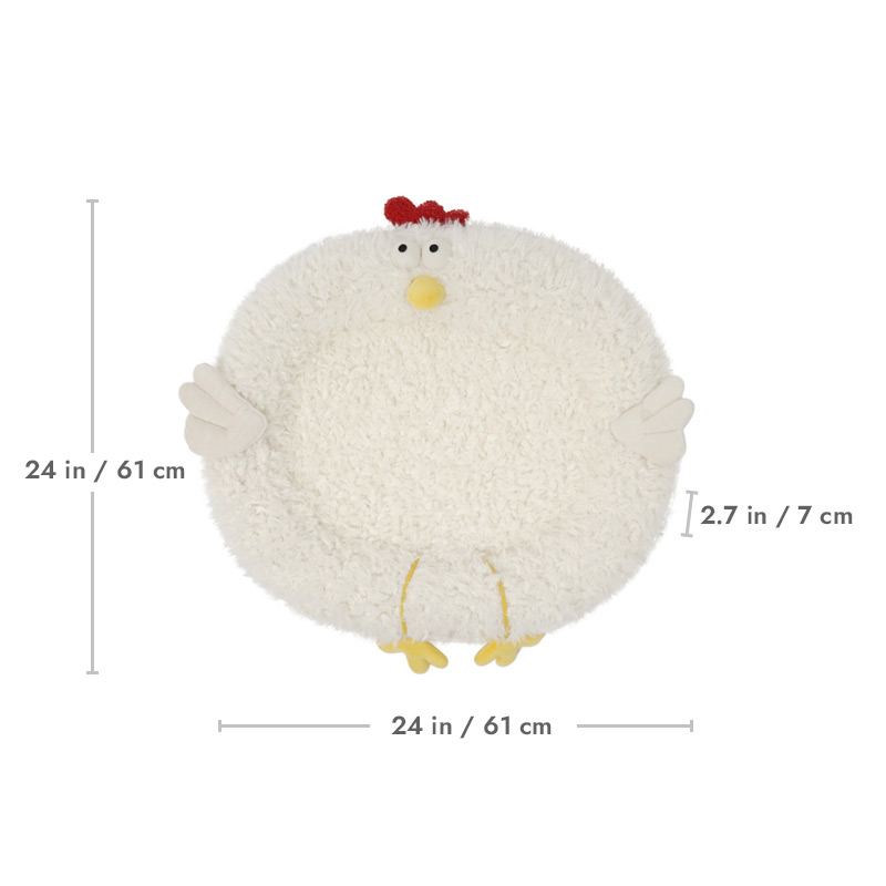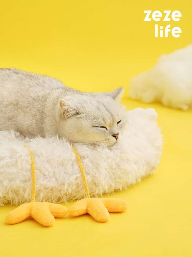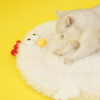Kitten easily fell into a deep sleep in the arms of the chick cluck bed mat, feeling the warmth in the cold winter while cute chick feet hanging around.