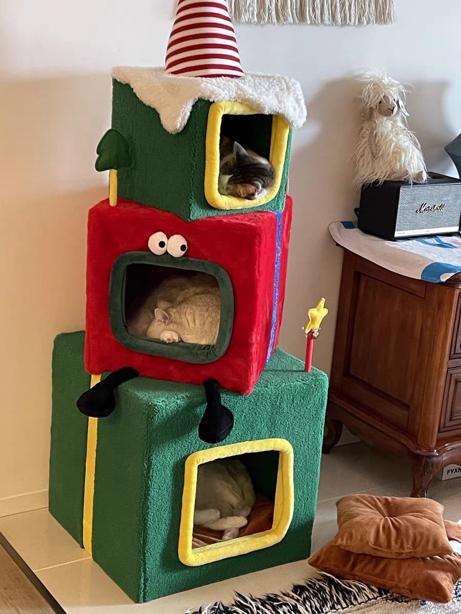 - Festive Vibes – This Christmas cat house features vibrant colors and a variety of playful designs, from soft hats to curious eye decorations. Every detail not only sparks joy in cats but also embellishes your home.