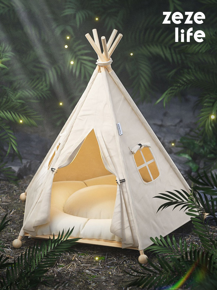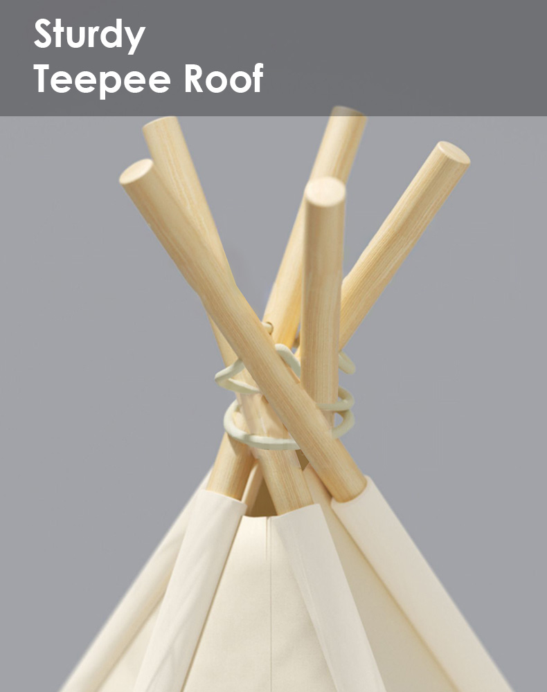 - Sturdy Teepee Roof – The cat teepee features a sturdy teepee roof that is tied and fixed on the five pillars with ropes, making it easy to disassemble.