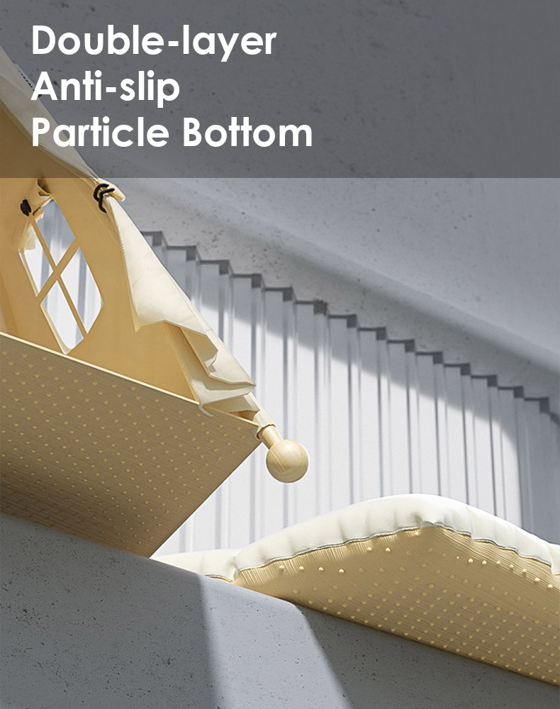- Double-layer Anti-slip Particle Bottom – Anti-slip rubber particles areused on the bottom of the cat mat and teepee. This increases friction and makes it difficult for the teepee to slide, providing a stable and secure surface for your cats to play and rest.