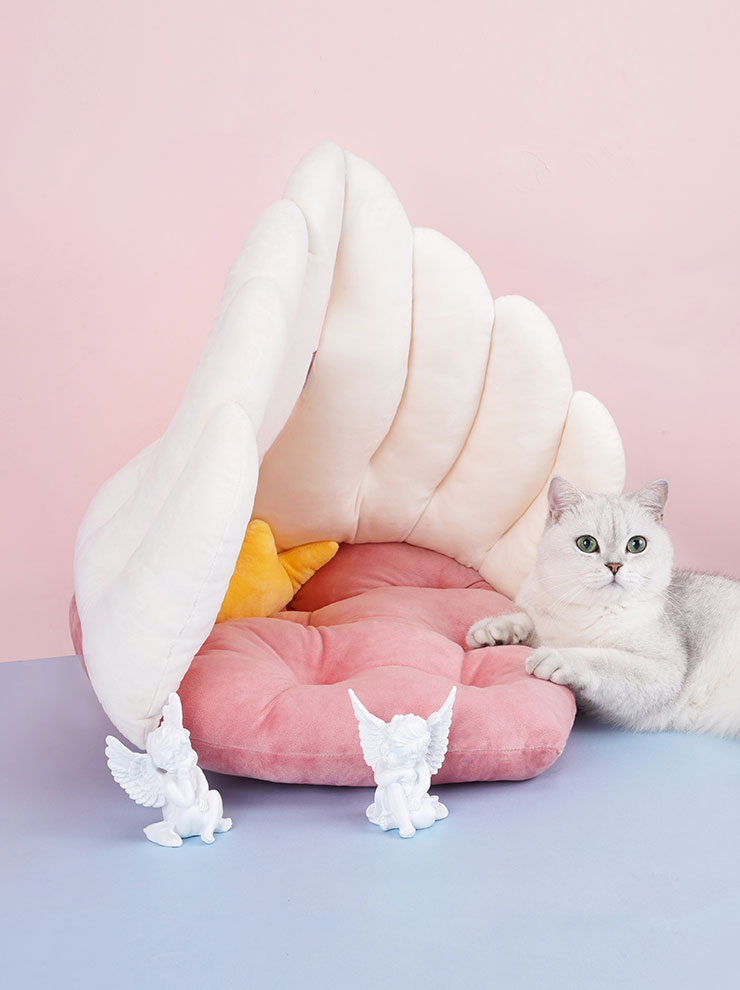 The cute dual-purpose angel pet bed adds another playful decoration to the living space of you and your pet. Tiling combines two usages to meet the various preferences of pets, which is convenient and practical.