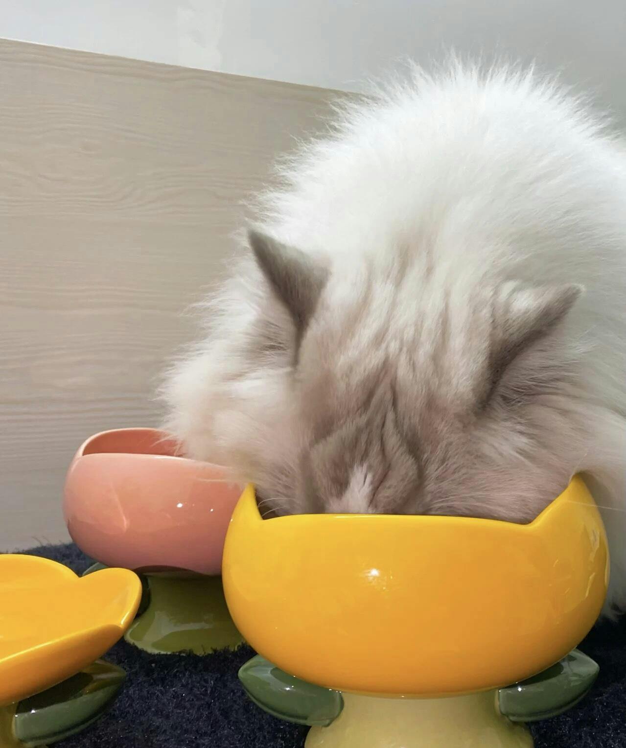 The morning sun roused the furball from his nap. Stretching luxuriously, he made his way to the kitchen, where his beautiful tulip bowl waited. As always, the sturdy ceramic held his food securely without spilling a single morsel. He dove in happily, tail swishing with pleasure. The ample size accommodated his big appetite perfectly. With each bite, the furball admired the elegant yet practical design. When his hunger was sated, he purred his thanks, enjoying another lazy morning in his warm, loving home – made all the cozier by the Tulip Ceramic Elevated Cat Bowl that made breakfast so easy and satisfying.