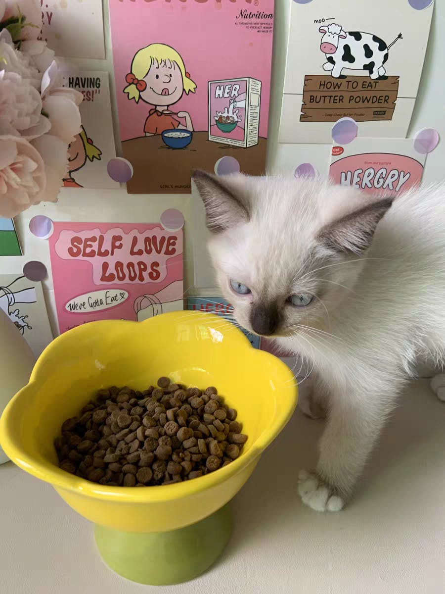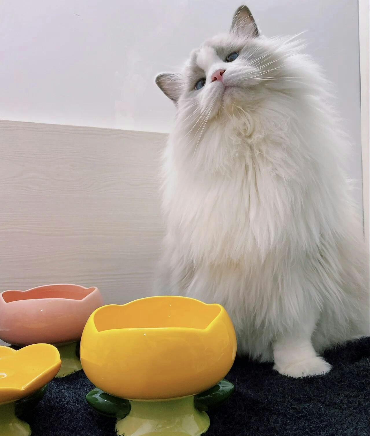 - Large Capacity – The elevated cat bowl design of the tulip cat bowl, with a capacity of 300ml, prevents food from spilling.