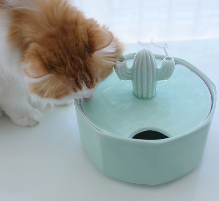 Our cactus cat water fountain provides a source of clean running water and encourages pets to drink—which can play an important role in long-term health, especially for you loving cats!