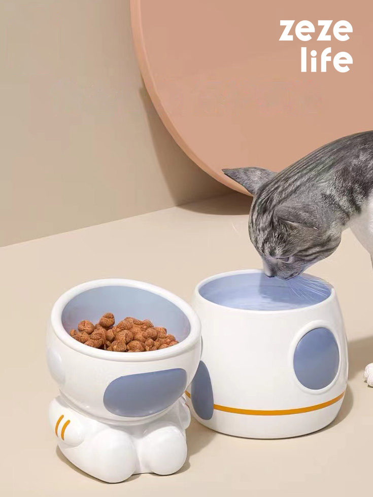 - Suitable Height – The added height of the astronaut cat bowl reduces cervical pressure, promoting better digestion and reducing the strain on your cat’s neck and spine.