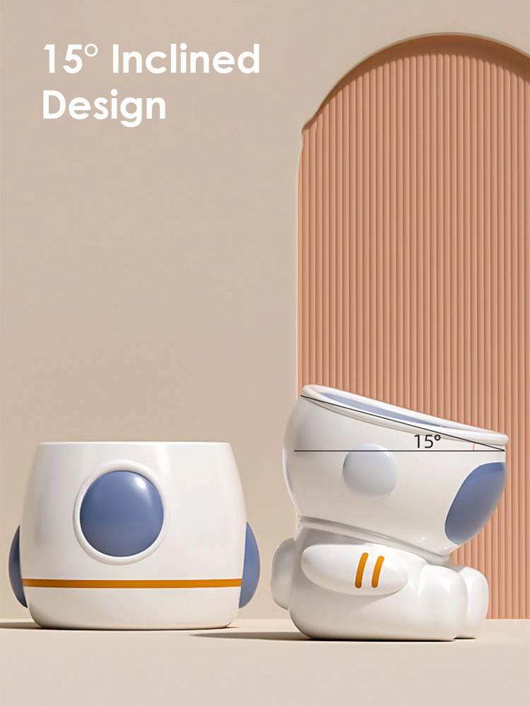 - Non-slip Design: The unglazed bottom edge of the astronaut-elevated cat bowls provides increased friction and stability, ensuring that the bowl does not slip or slide around on slippery surfaces.
