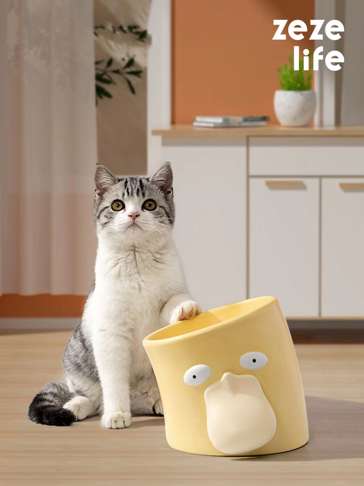 The morning sun rises and wakes the cat from his sleep. She climbed out of bed, stretched out her paws, and let out a big yawn. Her stomach growled, reminding her that it was time for breakfast. On her way to the kitchen, Furball noticed her ceramic animal bowl sitting right where it was. Inside is her favorite crunchy cat food. But first, she nuzzled her master’s hand and made a soft noise of gratitude. Now her belly was full of food and she happily buried her head in it. The curved shape allows her to reach every bite with ease. After a while, the bowl was licked clean. The happy day was full of contentment and had a wonderful start, thanks to the comfort brought by the elevated cat bowl that the owner carefully bought for her.