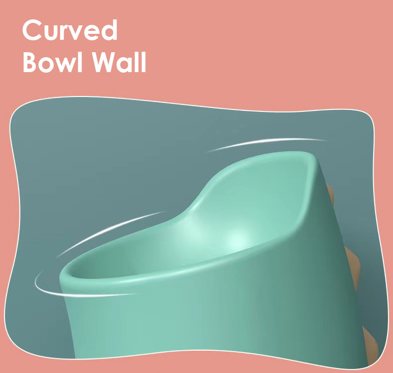 • Curved Bowl Wall – The shape of the elevated cat bowls helps to prevent food from spilling over the sides and gathering in the center, making it easier for cats to access and finish their food.