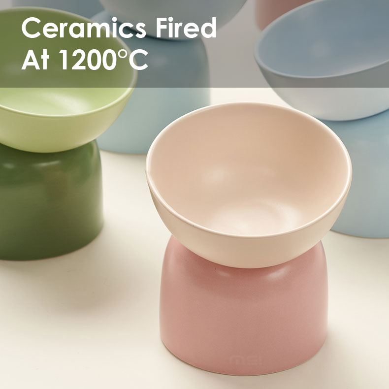 - Ceramics Fired at 1200°C – The ceramic elevated cat bowls are made of underglaze technology, safe for both people and pets.
