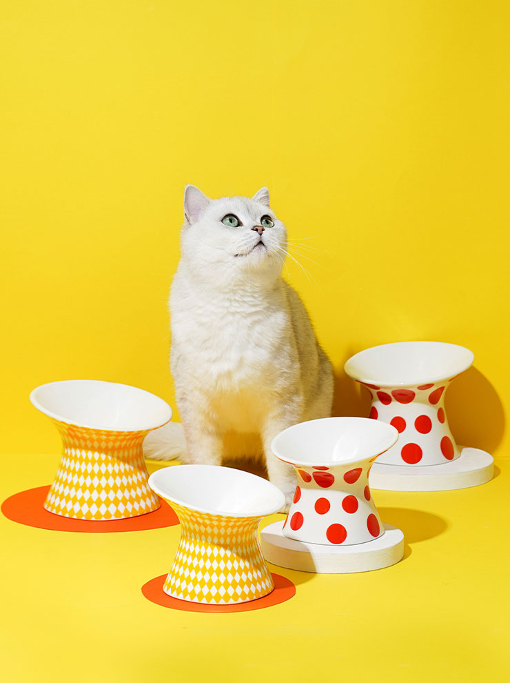 - 12°Slant – The slanted high leg design scientifically protects the cat’s cervical spine. With a super-large bowl mouth, big-faced cats can eat without worry.