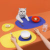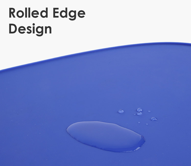 - Rolled Edge Design – The heightened frame design prevents liquid from spilling and the cat food mat stains the tabletop, making it easier to clean up.
