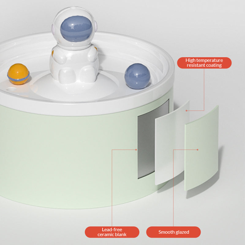 - Safe Ceramic – Astronaut cat water fountains are made of high-quality food-grade ceramic material, sturdy, durable, safe, non-toxic, and with long service life.