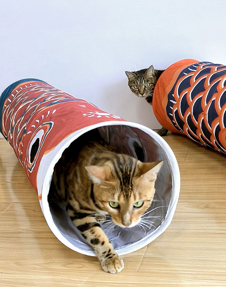 - You can place items with cats’ familiar smells in the tunnel to guide cats to use them.