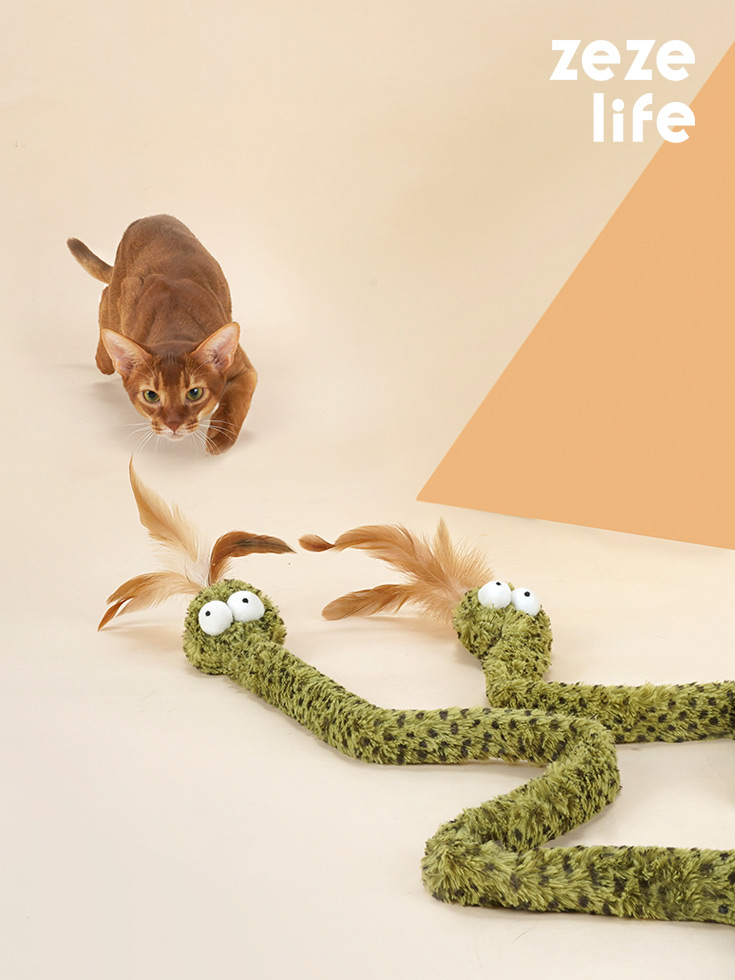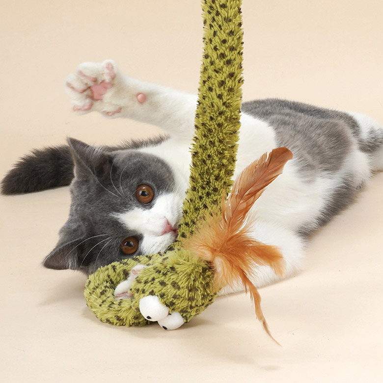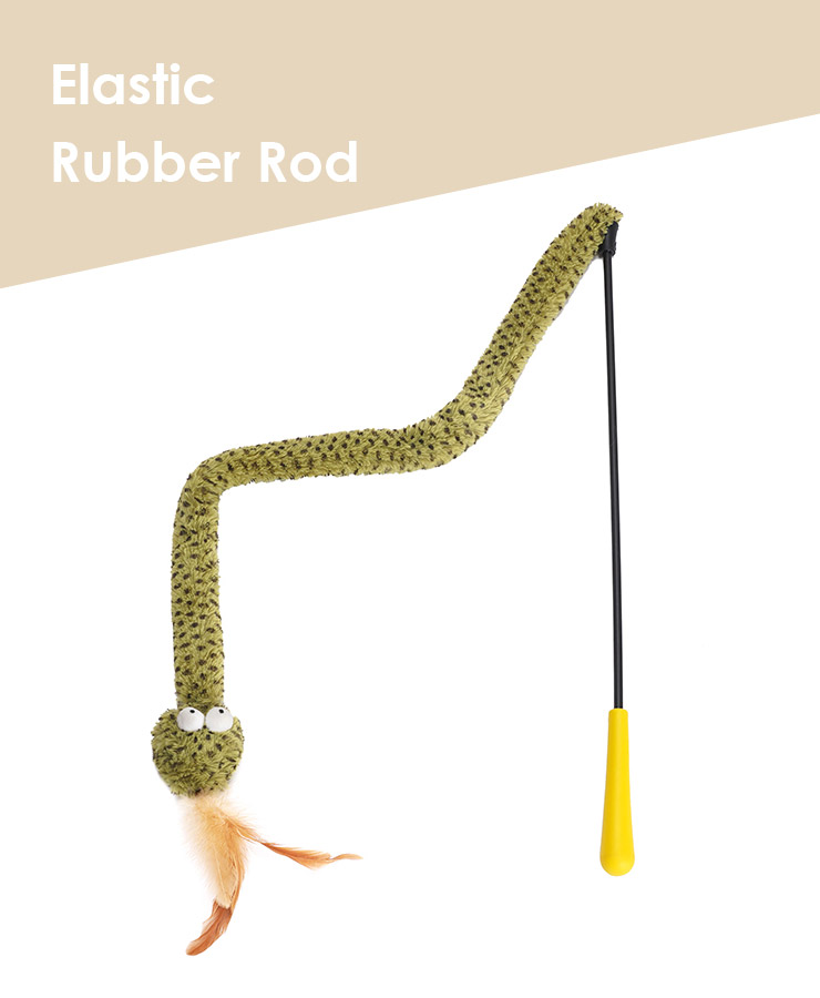 The squeaking rattlesnake is staring at its cute big eyes and spits out a tongue to attract curious cats. The thick elastic rubber rod is strong and resistant to bend. The cat teaser is designed with soft plush and natural feathers for a sweet relaxing time.