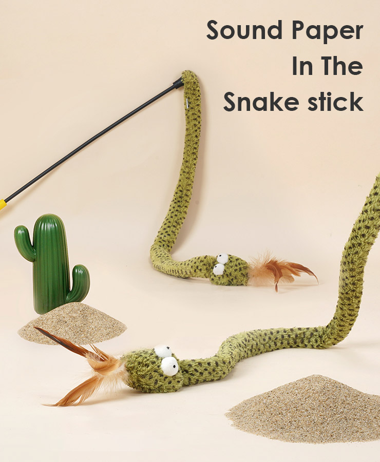 - Sound paper in the Snake Stick – The snake is equipped with sound paper. Every time when you press and shake, the snake will make sounds to attract cats