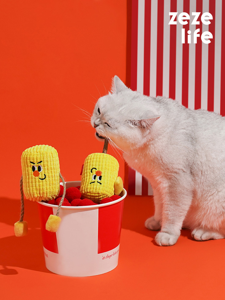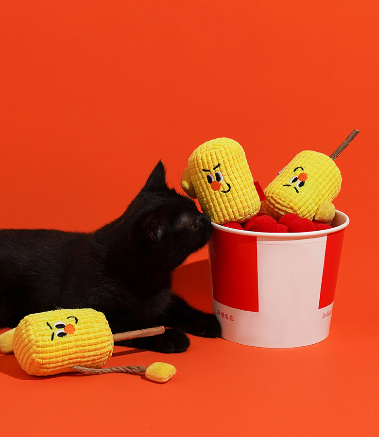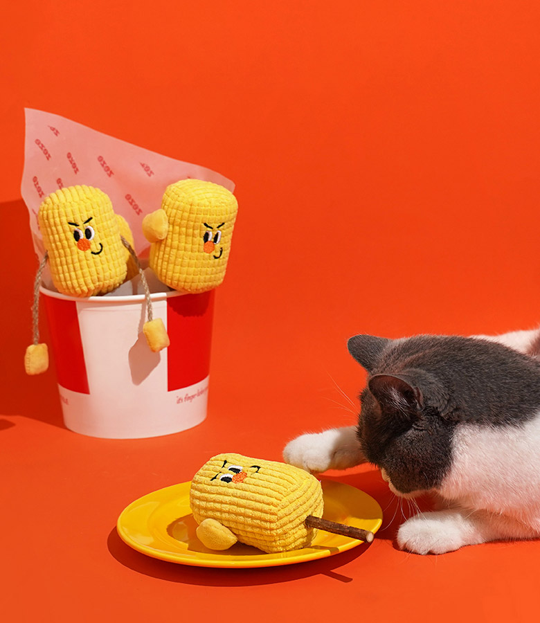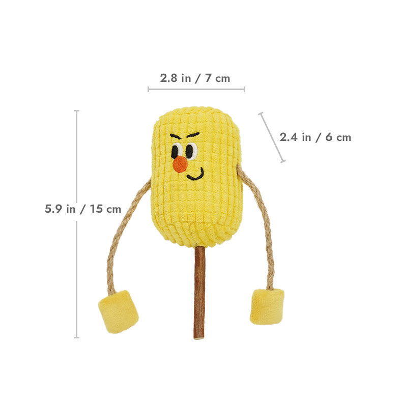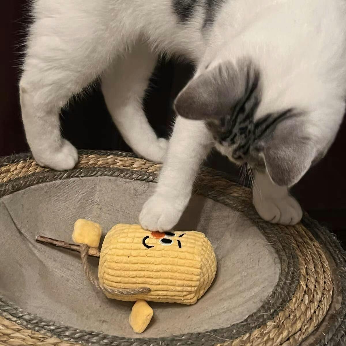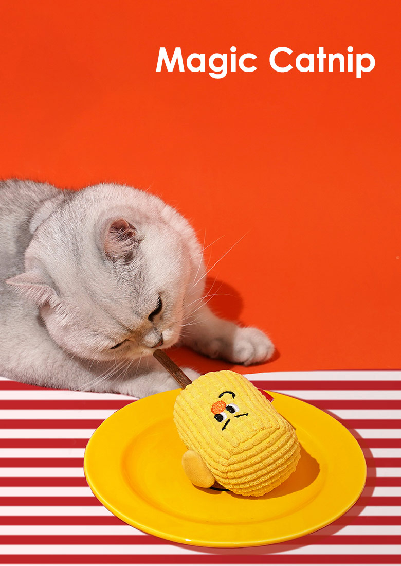 A catnip bag is placed in the yellow corn stomach, exuding the smell that cats enjoy. The silvervine trunk can be caught and fed to your kitten. Under the sunshine of sweet noon, give your cat a treat with this sweet corn. Silvervine and catnip make cats irresistible and enable them to enjoy the fun of catching and biting