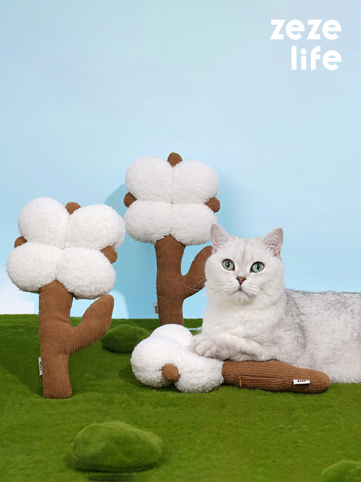 Cotton always gives people a feeling of warmth and comfort. Elegant white colors and catnip liner make this pillow not only provide companionship when the cat gets excited but also provide it with support when it is resting.
