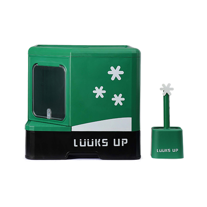- Closed Design – Effectively blocks out odors and dust. Clear baffles allow cats to get in and out easily. The gap in the door leaves room for the cat’s tail, so the tail won’t get caught. Built-in odor absorbing pad.