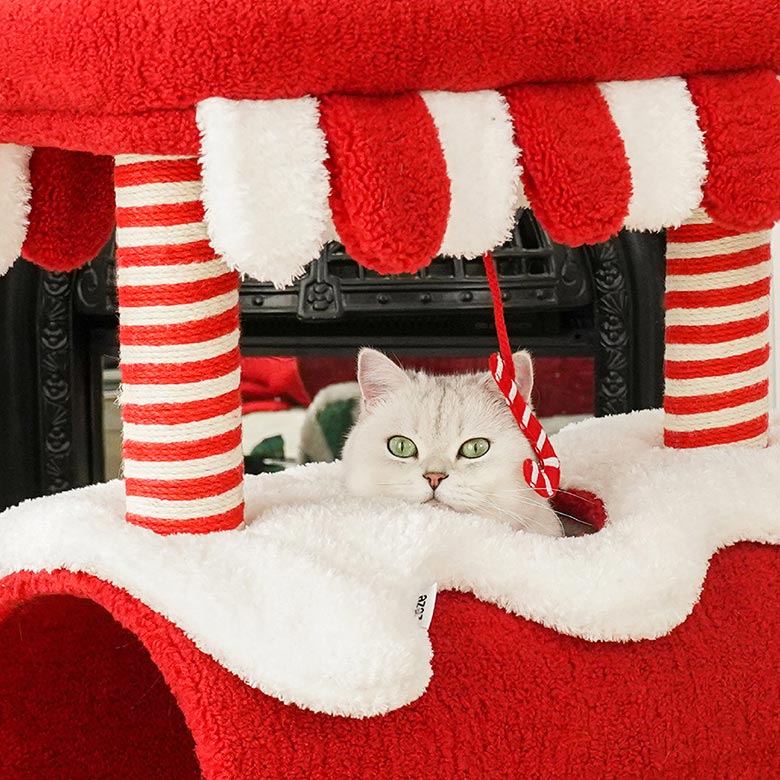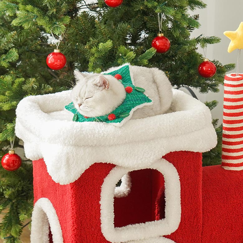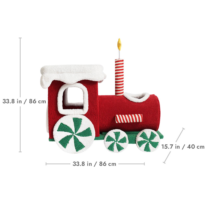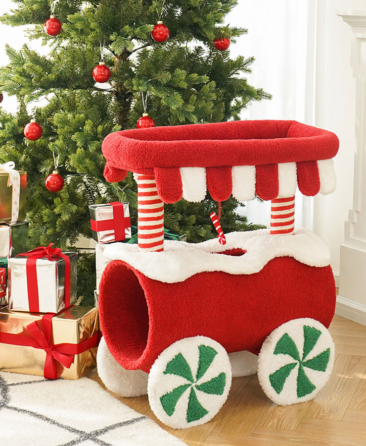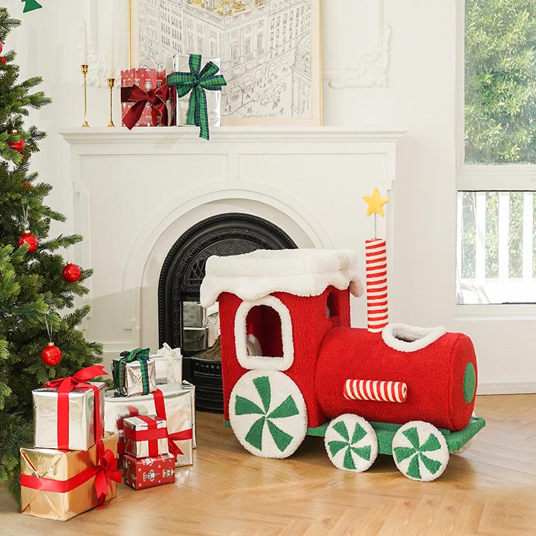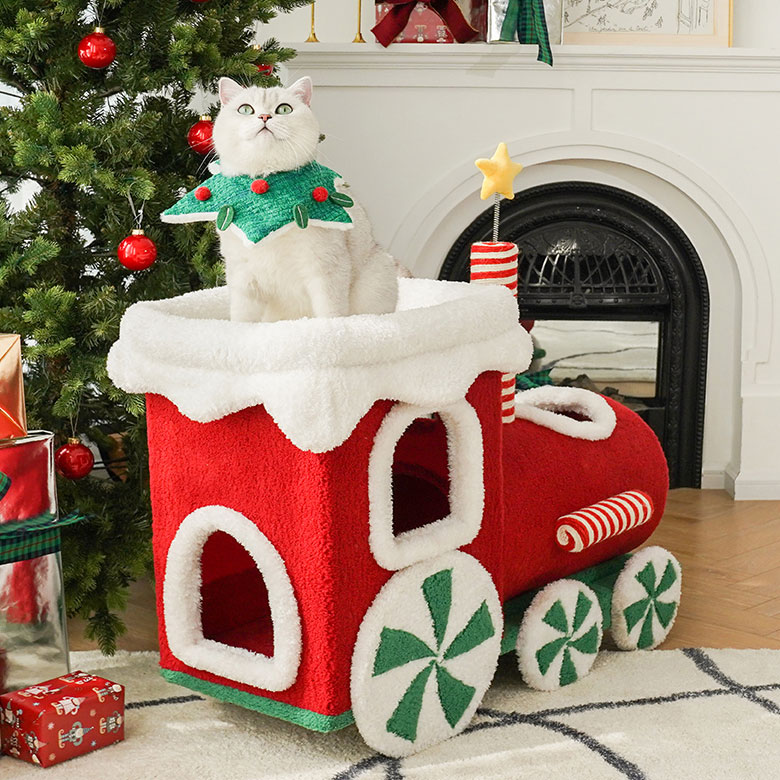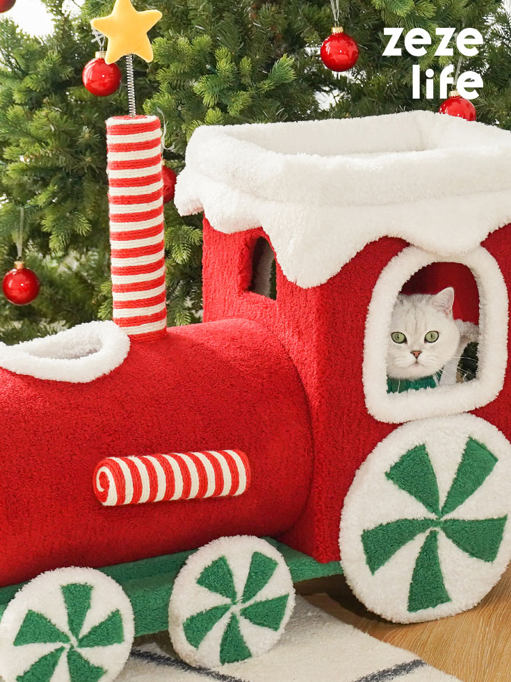 - Keep the Christmas train cat condo dry and do not place it in a humid environment.
