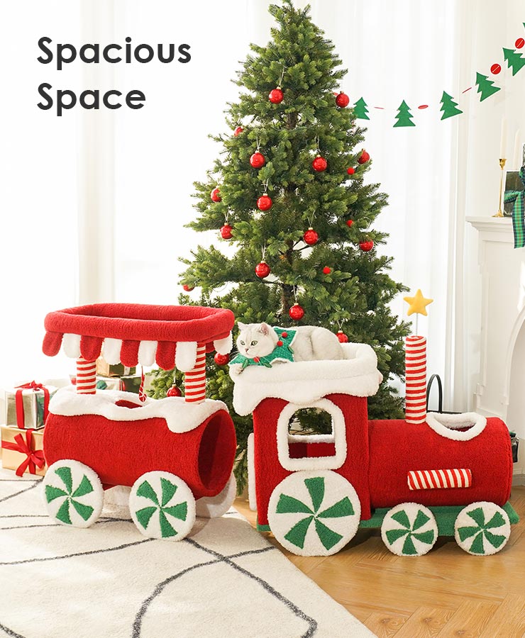 - Spacious Space – The locomotive and the carriage of the small train are connected to each other. Huge space for cats to climb and play.
