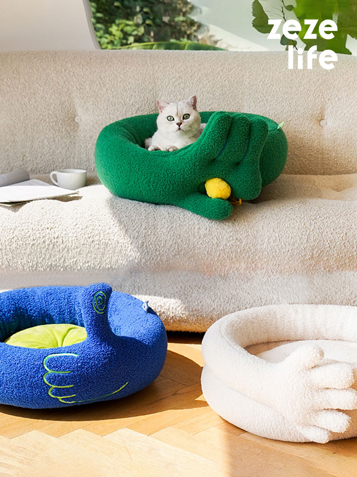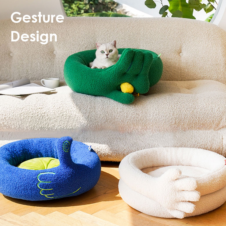 “Thank you”, “No problem”, “Very good” three gestures of the pet bed, soft and comfortable to the touch, dedicated to creating a warm environment for cats. Childlike cartoon gesture design, with a variety of colors, gives people a bright spot feeling.