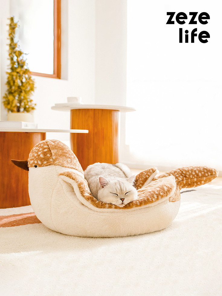The warm sun shines into the house, the warm wind blows on the cat’s face, and the little sparrow carries the cat to stop and rest; The soft and comfortable bunny fur gives the cat a deep feeling; The Big full interior fills the cat with a comfortable experience.