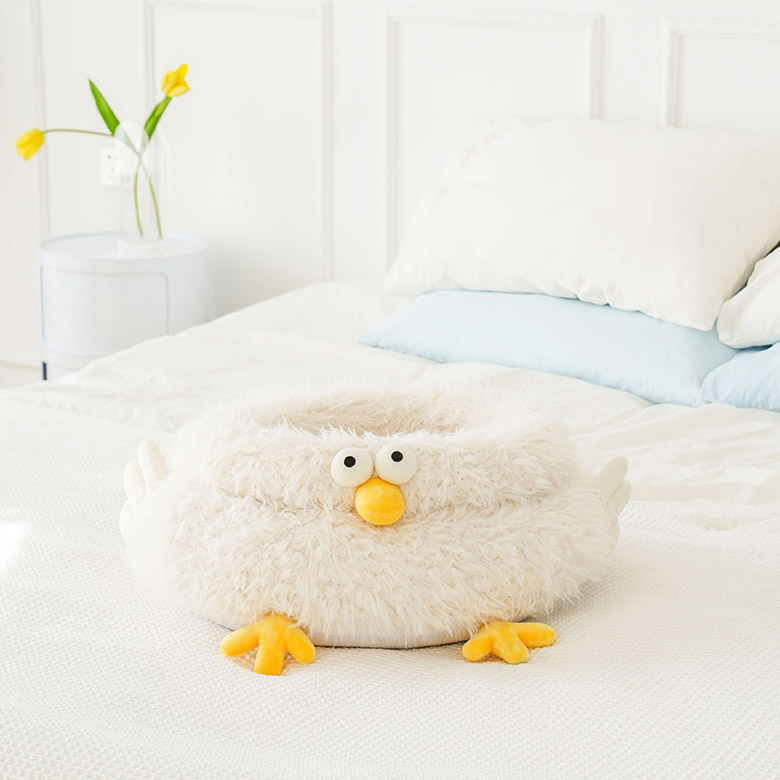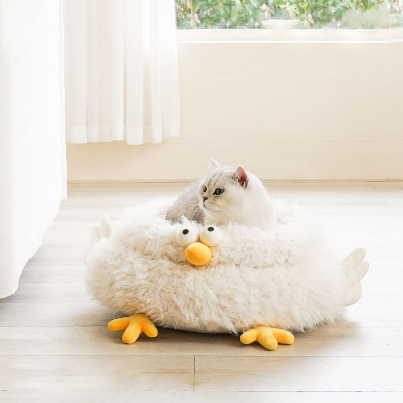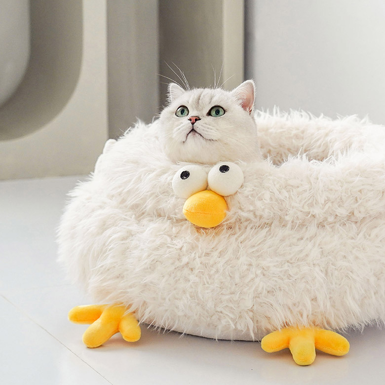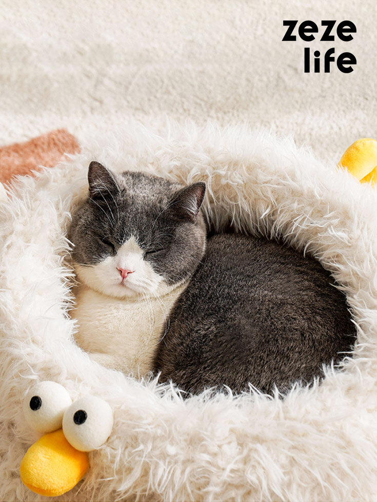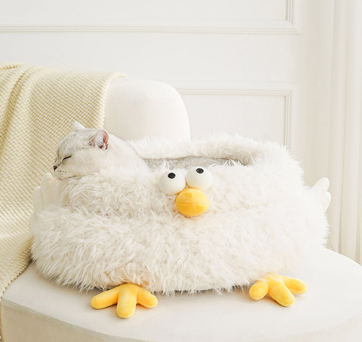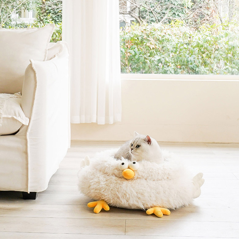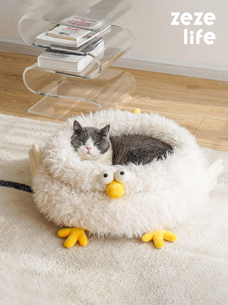 Under the sunset, the kitten is staying in the soft cloud-like chick cluck cat bed. The gentle light beige color scheme gives cats a sense of security even in winter and makes cats even forgetting where they are. But the little cat and Cluck will always wait by the window to wait for you to go back home.