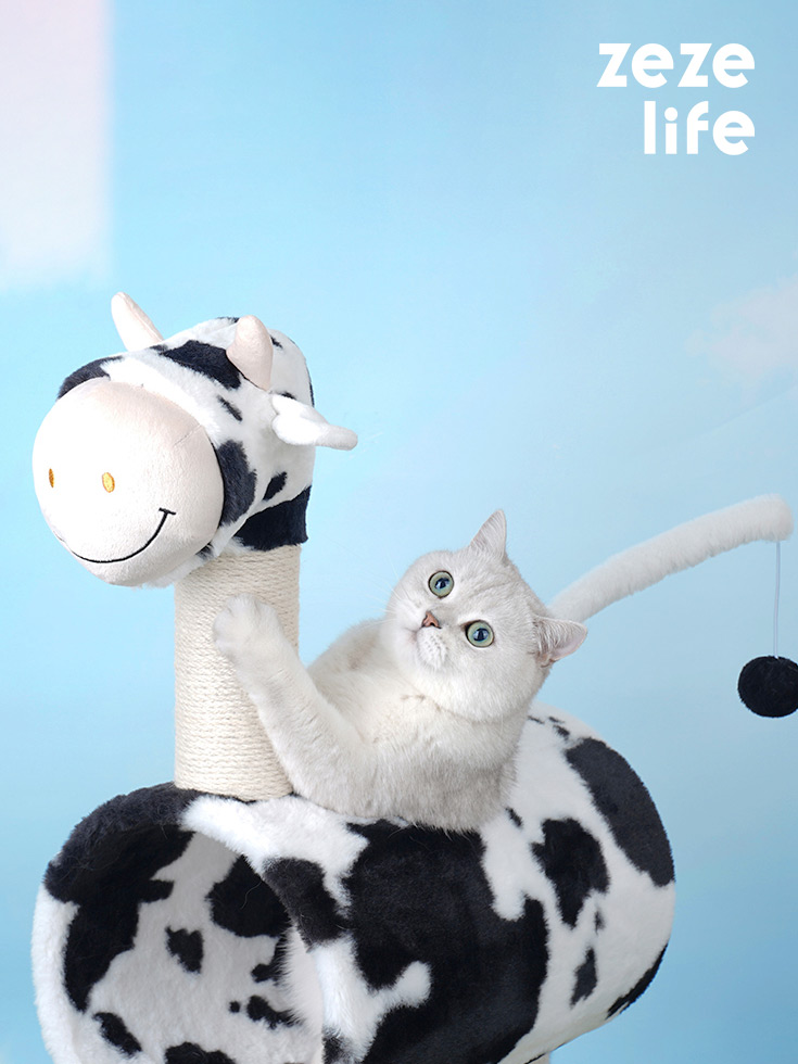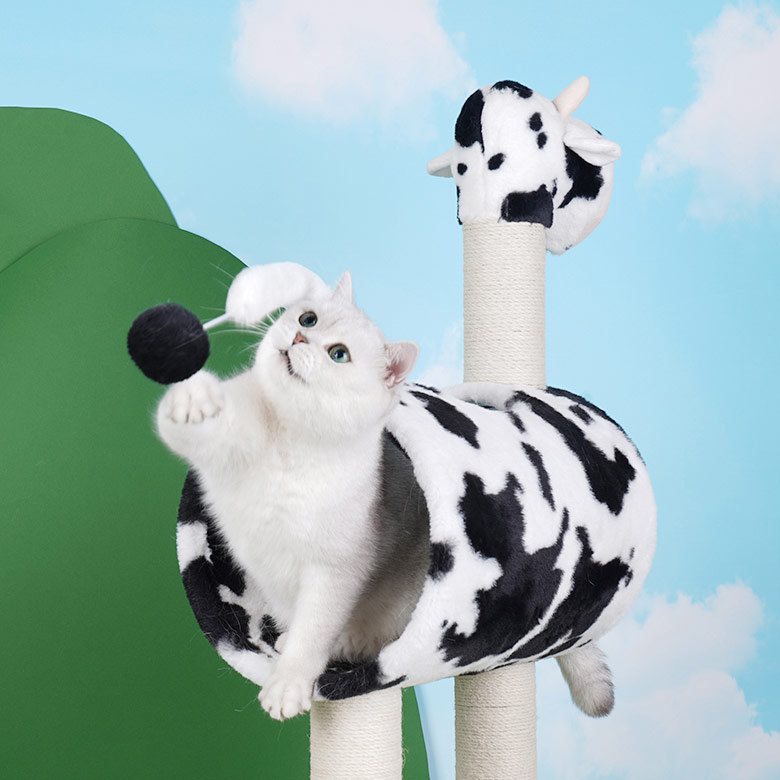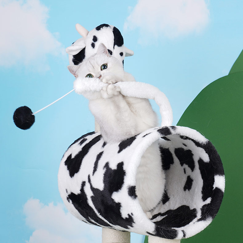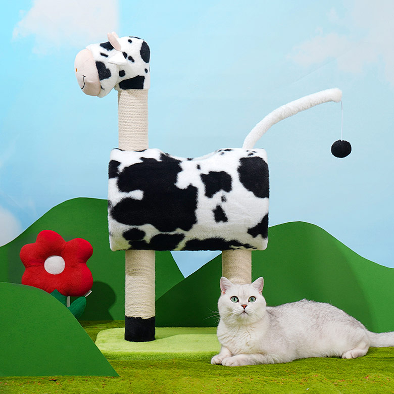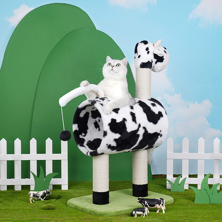 - Use a vacuum cleaner to clean the cow cat tree surface hair, or gently wipe the surface stains with a wet towel.