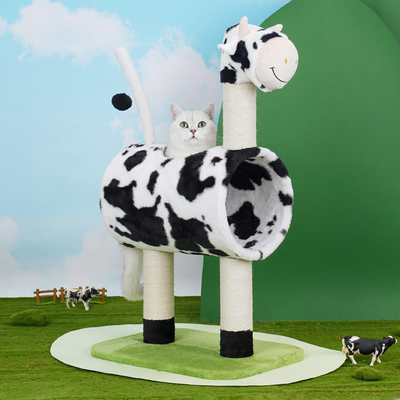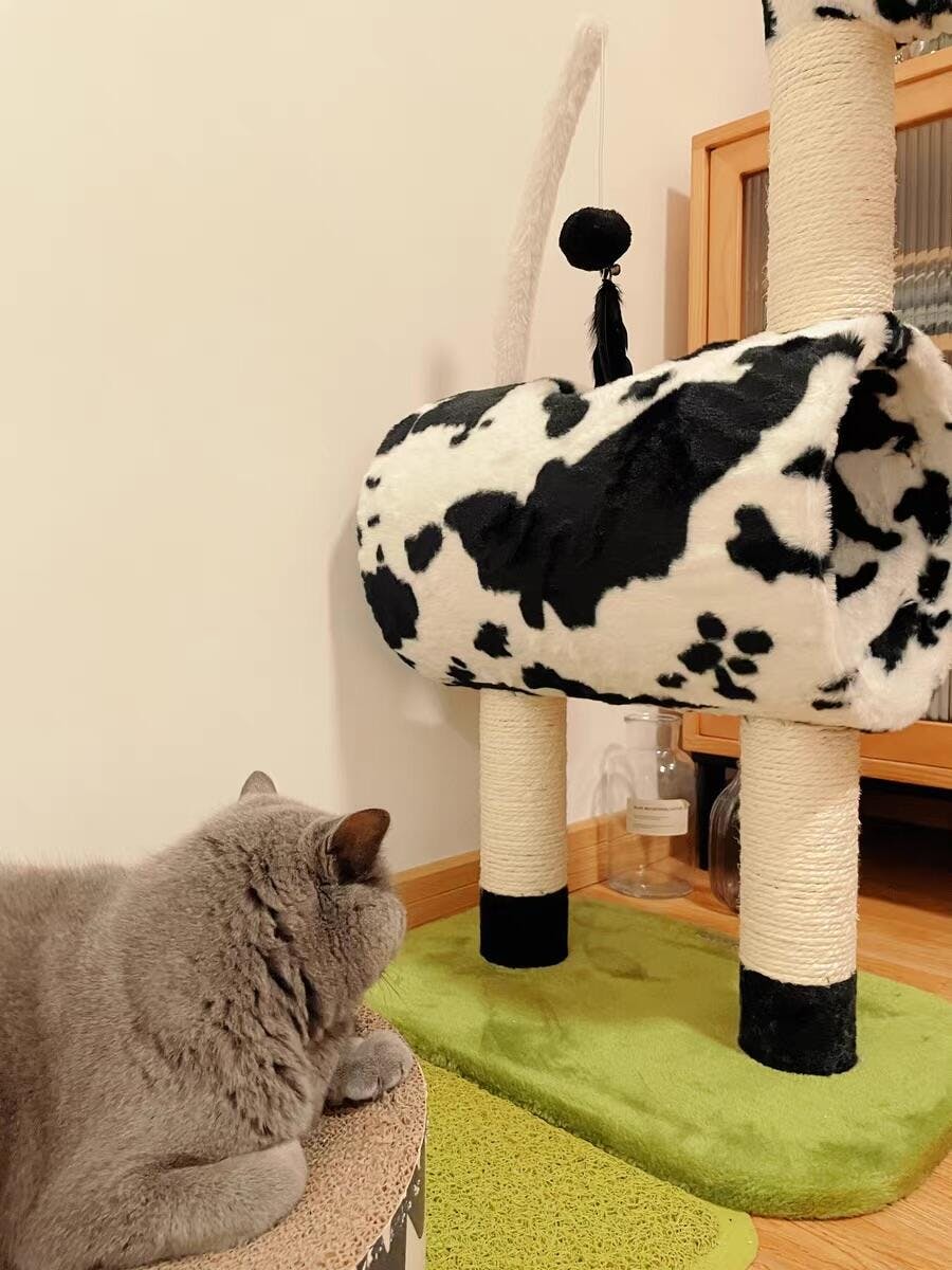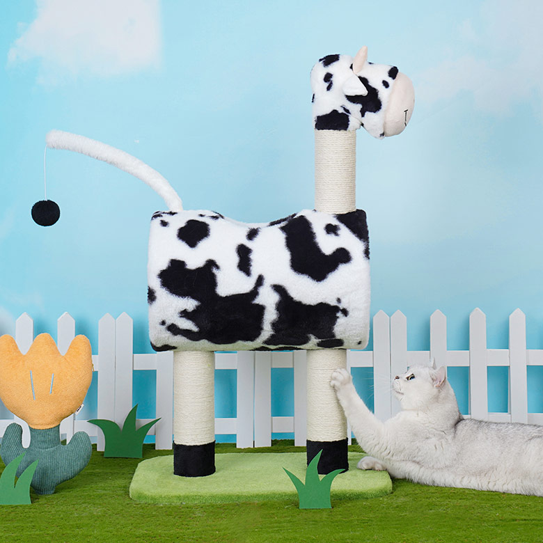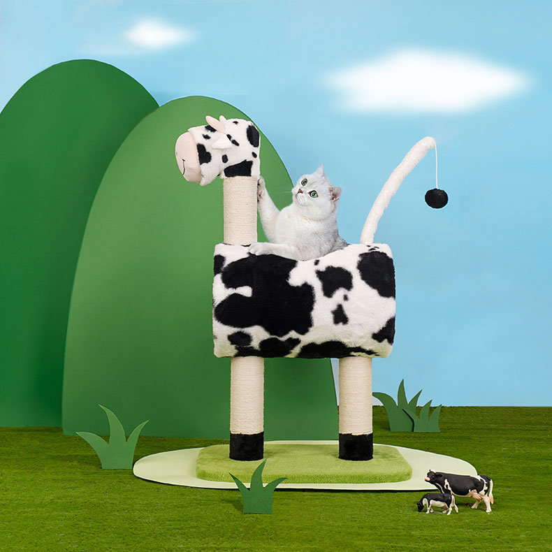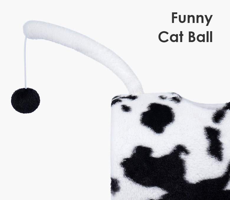 - High-density Base – Choose a thickened bottom plate to ensure that the cow cat tree will not shake or collapse when the cat is playing. At the same time, the four corners of the bottom plate are also designed with curved wrapping, making it safer for cats to play.