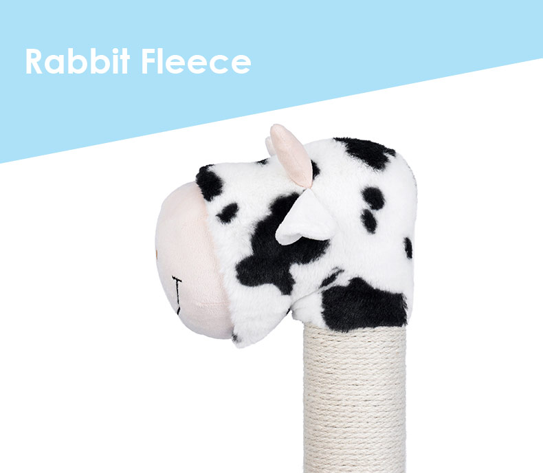 - Fluffy Cow Head – The cow head on top of the cat tree is fluffy and soft, perfect for cats to cuddle up against or bat around during play. It adds a whimsical, decorative touch that cat owners would enjoy.