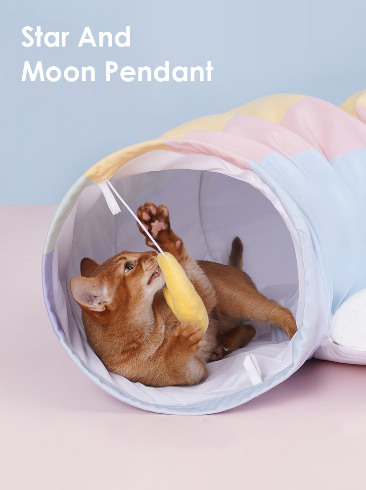 - Star And Moon Pendant – The soft star and moon hanging balls sway gently, attracting the cat to play and explore.