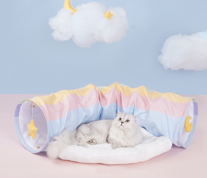 - Keep the rainbow cat tunnel bed dry and do not place it in a humid environment;